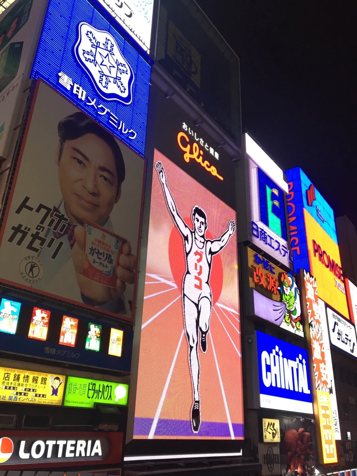 道頓堀和心齋橋的分界最好認的就是這個固力果看板!來這裡一定要記得跟固力果看板合照喔!另外建議早上拍,不然會背光,不好看~